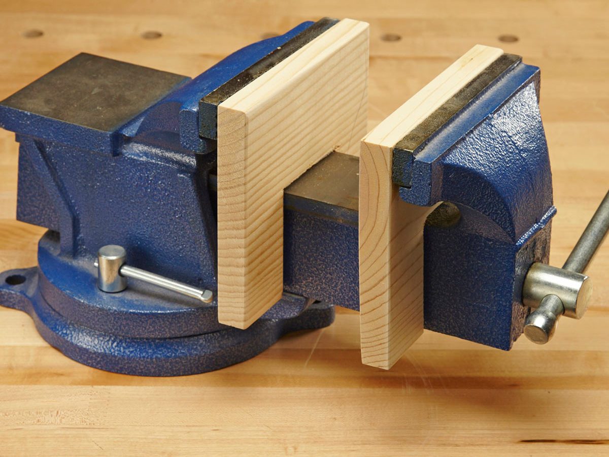 I have a metalworking vise in my shop, but occasionally I need a woodworking vise. Rather than buy another vise, I put wooden pads on the shaft of my metalworking vise. They protect the delicate pieces of my woodworking projects. — Rich Knight