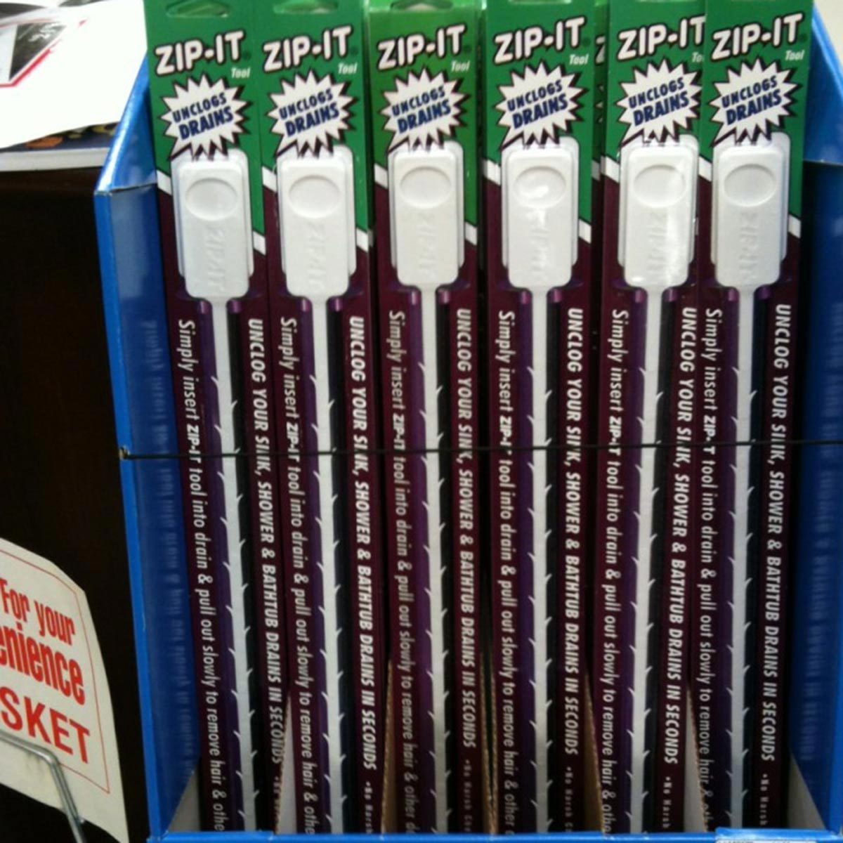 The Zip-It drain tool is a thin stick of flexible plastic with tiny barbs up and down the sides and...