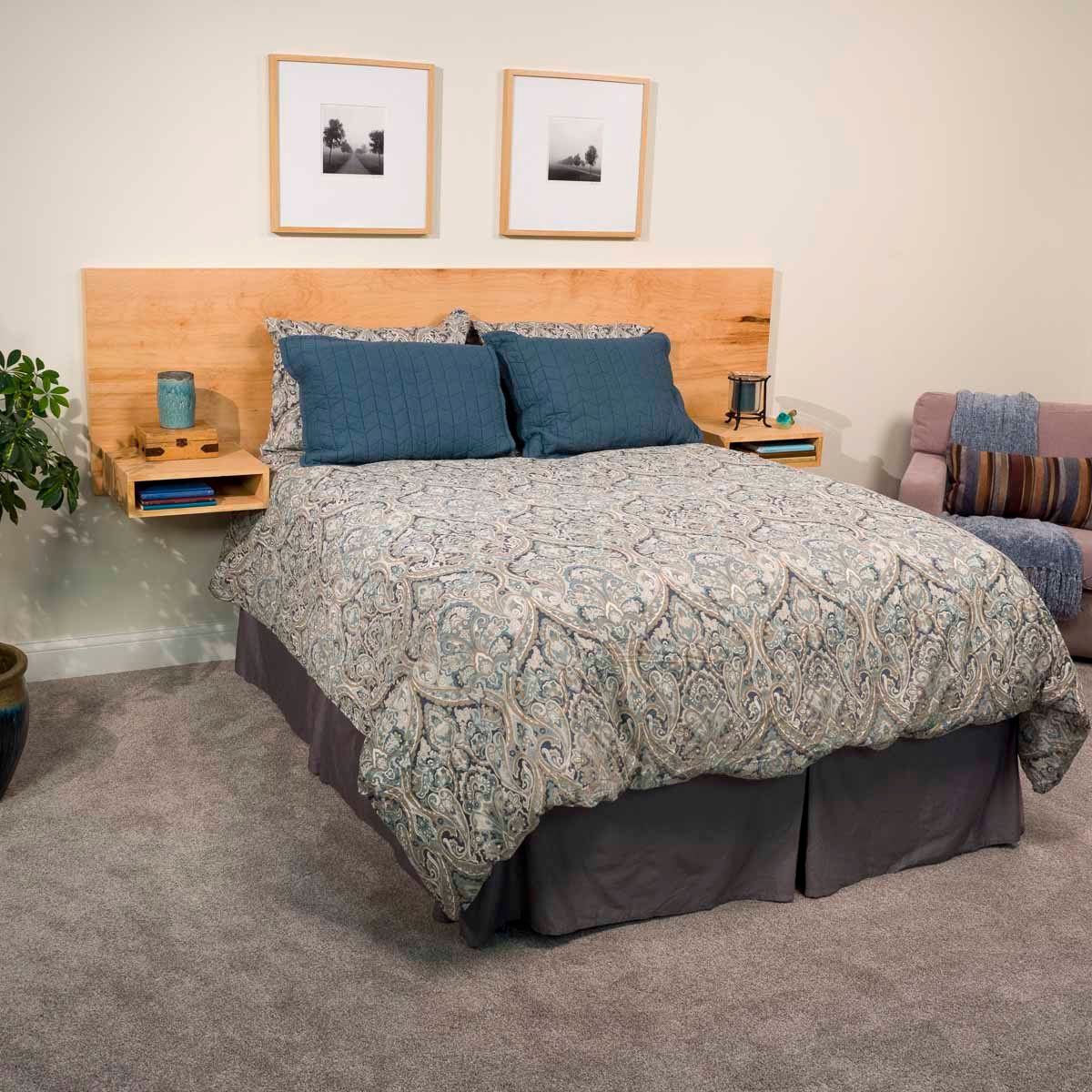 Build this modern headboard with floating storage cubbies in less than a day and with one sheet of plywood!