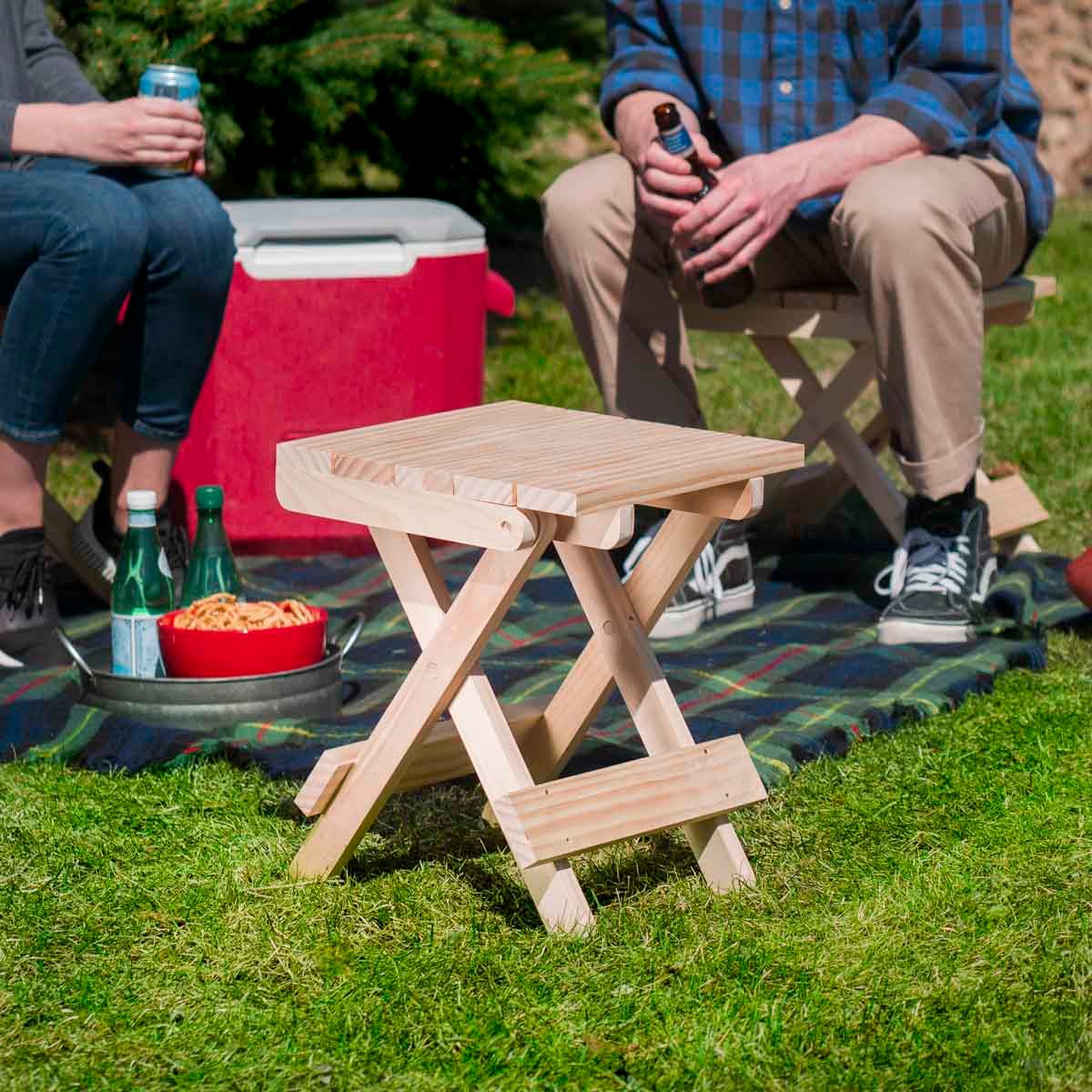 Build a few of these small folding stools in an afternoon, and take them out camping or to sit around...