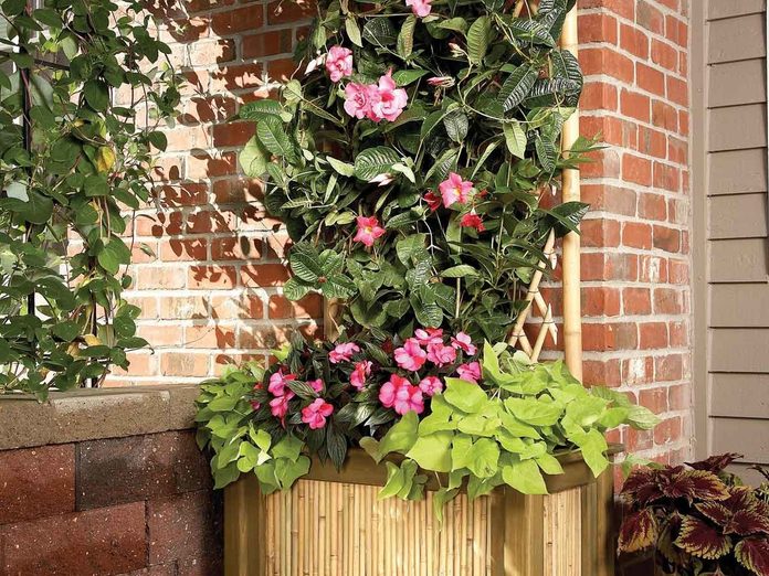This unique planter will probably take a couple of days to build, but it’s worth it. The bamboo is beautiful, especially when your vining plants incorporate with the trellis. Put several of these planter trellises together and you have a living privacy screen.