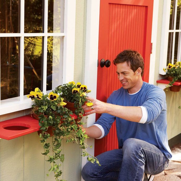 You can build this wooden planter box in less than an hour. You’ll need to cut out holes with a jigsaw and attach the outdoor planter boxes to the house with some screws. Use the clay pots to add some color and up your home’s curb appeal.