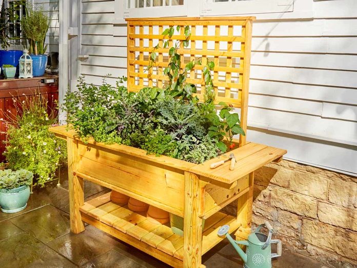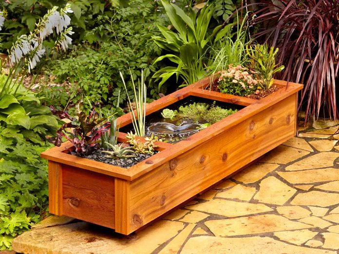This planter box has space for regular plants and water plants. It may take beginners more than a day to build this, but it’s not overly complicated and requires only basic tools.
