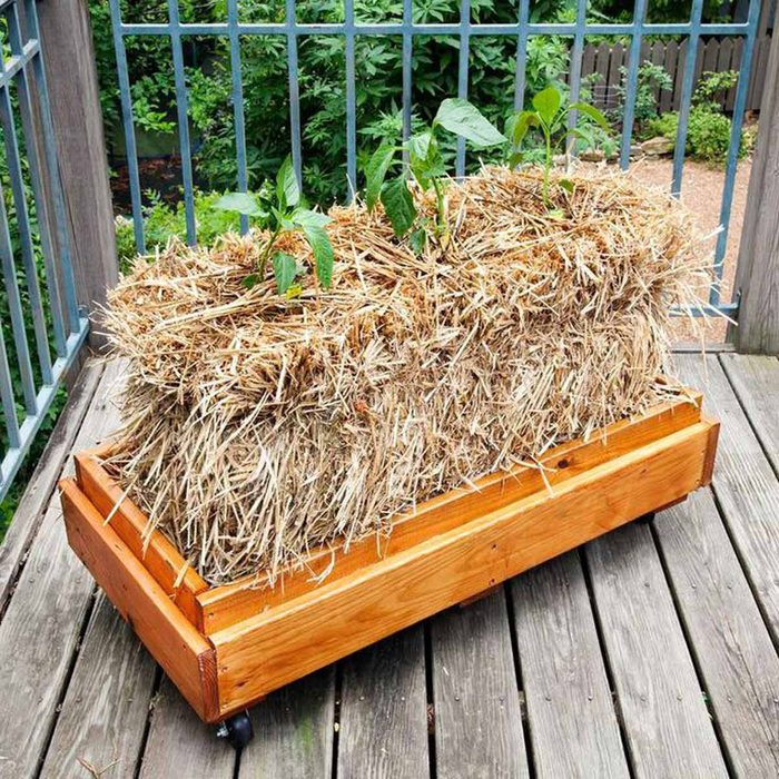 If you want to try straw bale gardening on a small scale, make a straw bale planter box. It does take 10 to 14 days to condition the bale, but after that you’ll have it planted in no time.