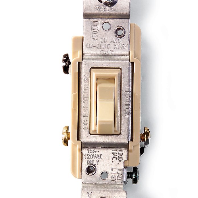 If you look at a 3-way switch you’ll notice it looks different from a standard “single pole” switch. The actual switch is larger because there’s more going on inside. And there’s an extra screw terminal on the side that allows a connecting point for an extra “common” wire so the switches can “talk” to one another. And you’ll notice, the toggle lever won’t have ON and OFF markings. You may even encounter 4-way switches—both in your house and in the electrical aisle of your home center—that allow you to control a fixture from three different locations.