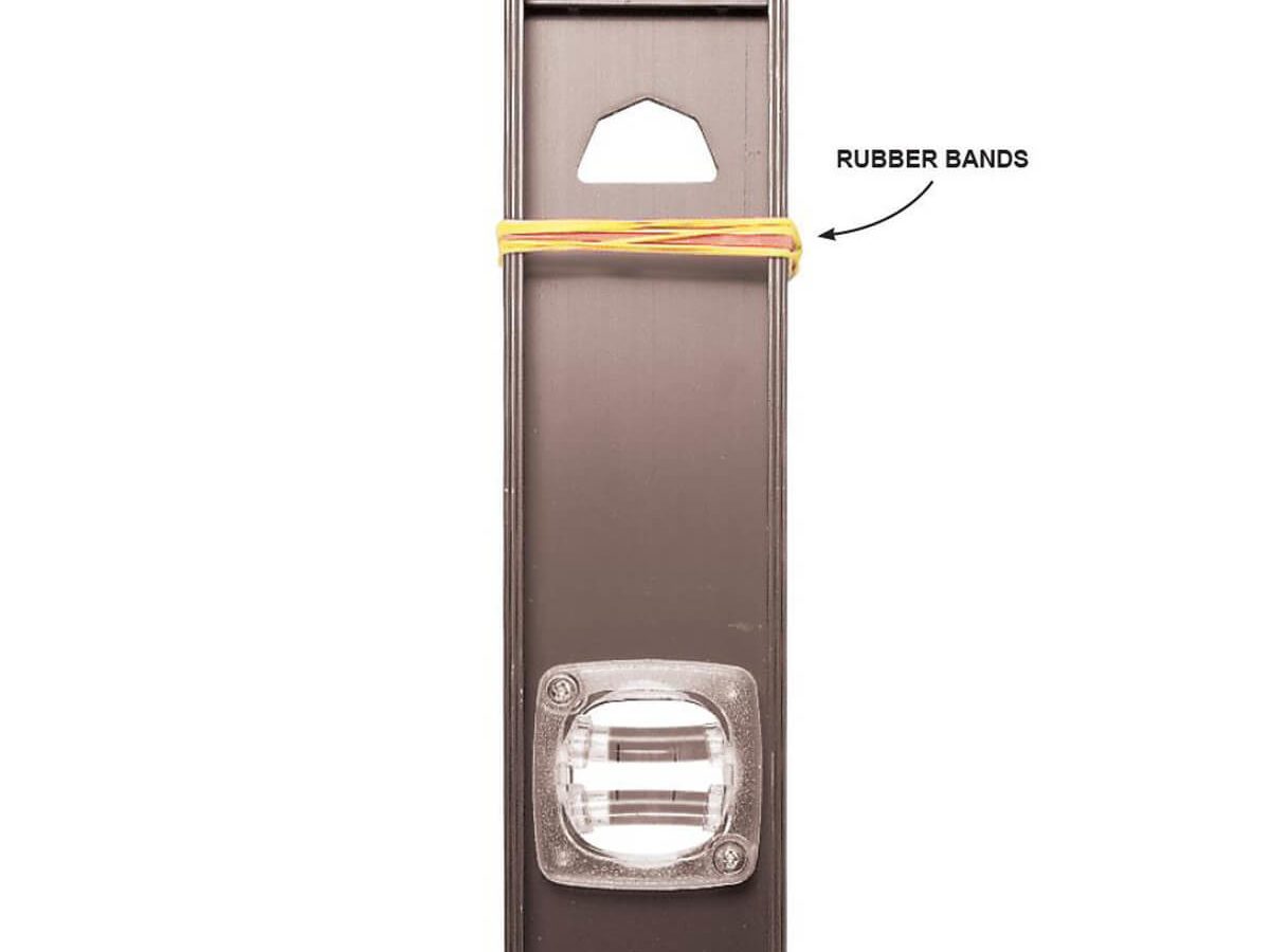 Need to go in and out of the same door a bunch of times while carrying stuff? It can be tough to do when the door keeps latching shut. To keep that from happening, take a rubber band and loop it around one doorknob or handle. Then, twist the rubber band once and then loop it around the other knob. The rubber band holds the latch down, preventing the door from latching shut. Now if the door closes, you can push it back open with your body even if your hands are full. If you have a door latch that’s not working, here’s an easy fix. Or find out how to fix a rattling door.