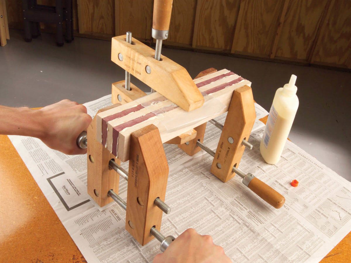 These clamps apply pressure horizontally as well as vertically, so the joint edges are wedged tightly together and stay level. Here’s how to make them: