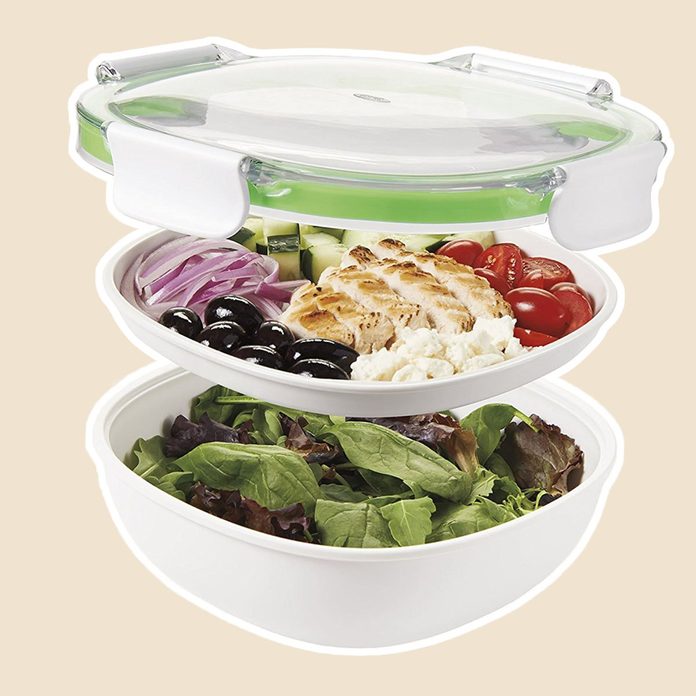 A leak-proof salad container is a meal prepper’s dream! Whether you’re taking a fresh salad to work or on a road trip, this OXO salad container ($18) keeps lettuce separate from proteins or grains until you’re ready to eat. Your greens will stay fresh, crisp, and delicious.