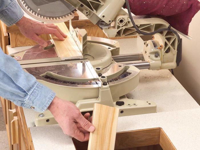 This waste-management ingenuity is pretty handy at a miter saw station. Directly below the hole is a recycling bin resting on a rollout shelf. When the bin fills up, it’s off to the burn pile. Learn 11 things you didn’t know about recycling.