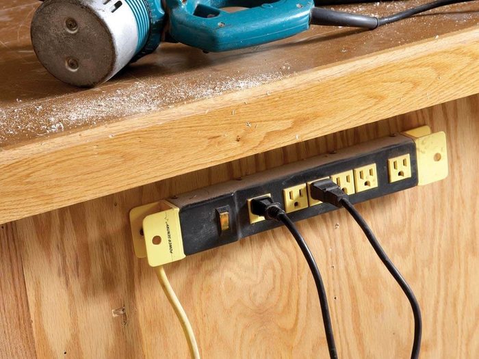 This oldie-but-goodie tip comes from David Gersic. Screw a power strip to the side of your workbench and you won’t have to monkey with extension cords anymore when using power tools for bench work. Next, check out 19 futuristic workshop tech products that’ll make DIYers drool.