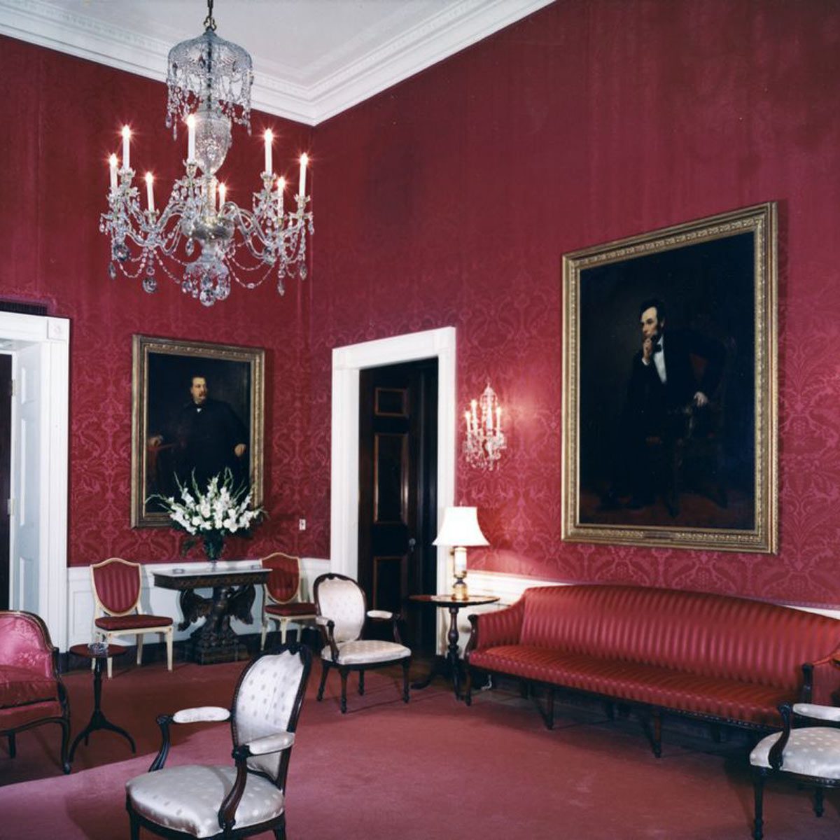 The Red Room was almost completely designed in a French style. Revamps included pinkish-red silk upholstery for the wall. The room held a gueridon, a small table with a circle top that is supported by columns or by human sculptures or mythological figures. There are sofas that belonged to Dolley Madison and George Washington’s granddaughter, Nelly Custis. Jackie brought in a French empire chair that was in White House storage and carpet woven in France was donated after Andre Meyer funded it in exchange for a meeting with Jackie. A French chandelier from 1820, French bouillotte table lamps and French torch lamps were also brought in. Window treatments of straight panels of cerise silk suspended from a gilded wood rod and rings got added, too. Here are ideas to update your window treatments.