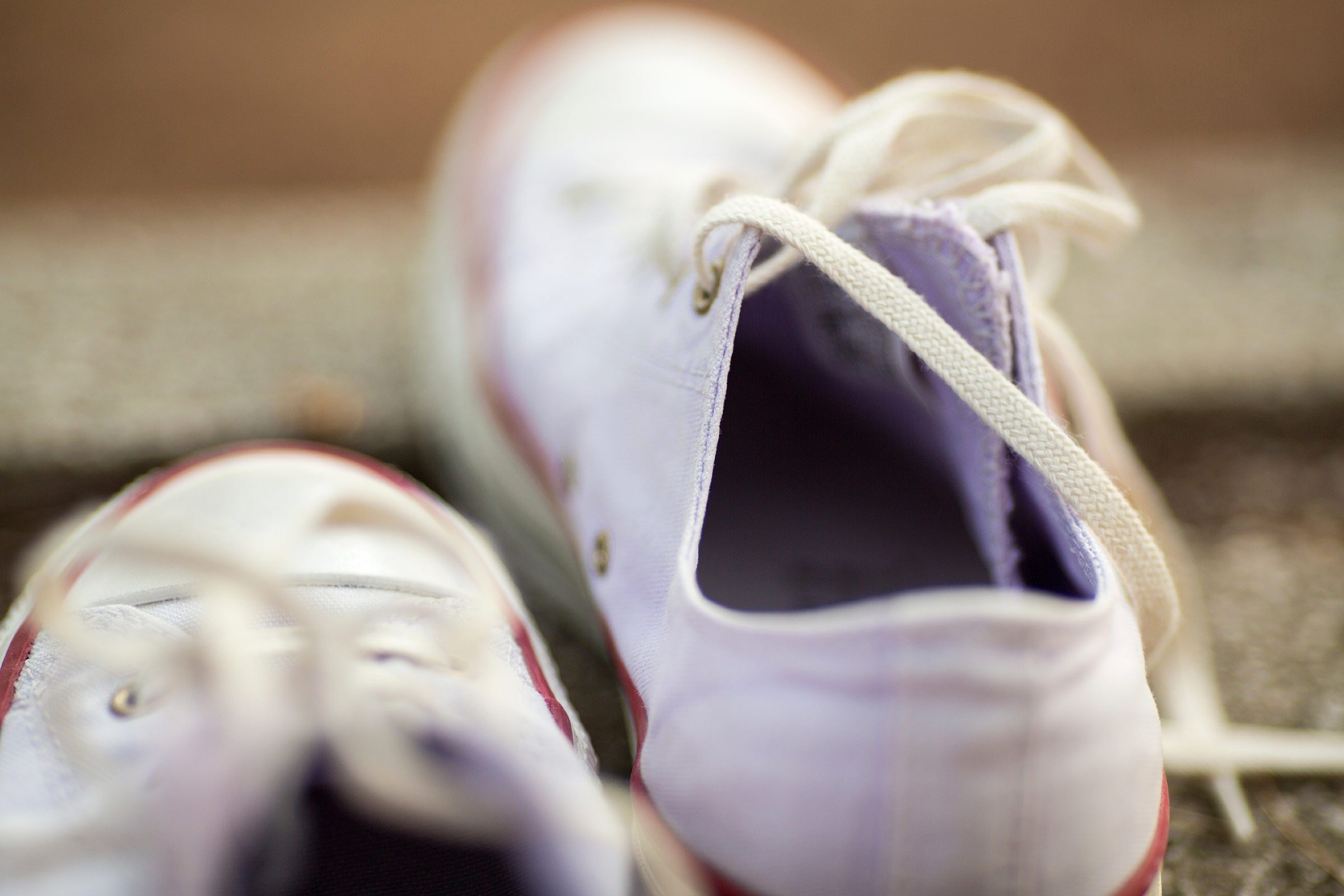 Remove the laces from canvas or nylon sneakers and slip them into a cotton pillowcase where they won’t get tangled. Take out any inner soles or padding from the sneakers and toss the shoes and pillowcase into your washer (if you’re concerned about the shoes causing a racket, throw in a few towels as well). Add the regular amount of detergent, plus a dash of vinegar to deodorize. Set your machine on a cold-wash delicate cycle. Allow the shoes and shoelaces to air dry. To wash white shoes, you may need to take a few extra steps to get them looking good again.