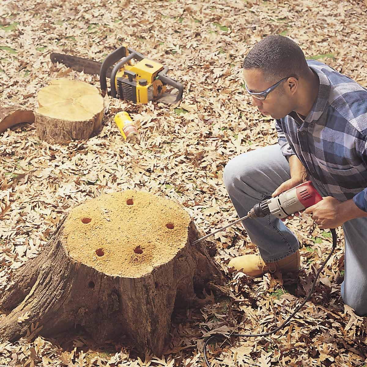 If you want to remove a stump, you can rent and use a power stump grinder. You can also buy it from the online or offline market. Alternatively, a can of tree stump remover can be used to do this. Almost every stump killer is made of potassium nitrate. It will help to speed up the decomposition process. After pouring the granules, fill it with water. You will see spongy roots after four to six weeks. Now, you can easily break the wood.