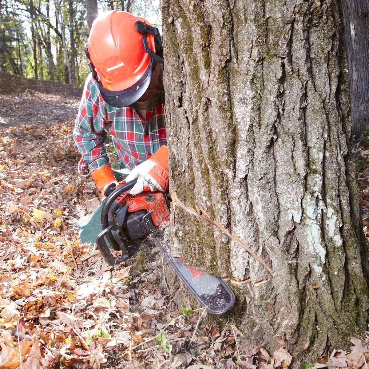 When you are using a chain saw and cutting a tree, safety is the most important thing. One of the most common reasons for tree removal is not having safety gear when cutting down a tree. You can use special chaps, which can stop a running chain and help prevent dangerous accidents. A helmet will protect your ears, eyes and head. Steel-toed shoes are also recommended.