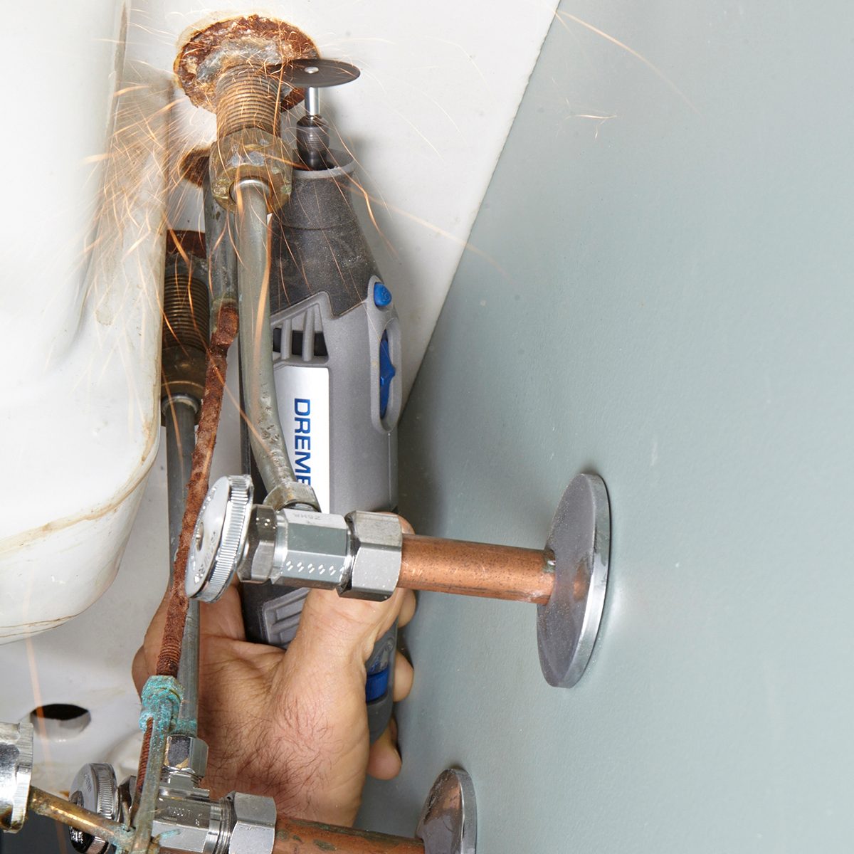 If you find rusted mounting nuts or other petrified connections that won’t budge, go ahead and cut them. An oscillating tool or rotary tool with a metal-cutting blade works well for this.