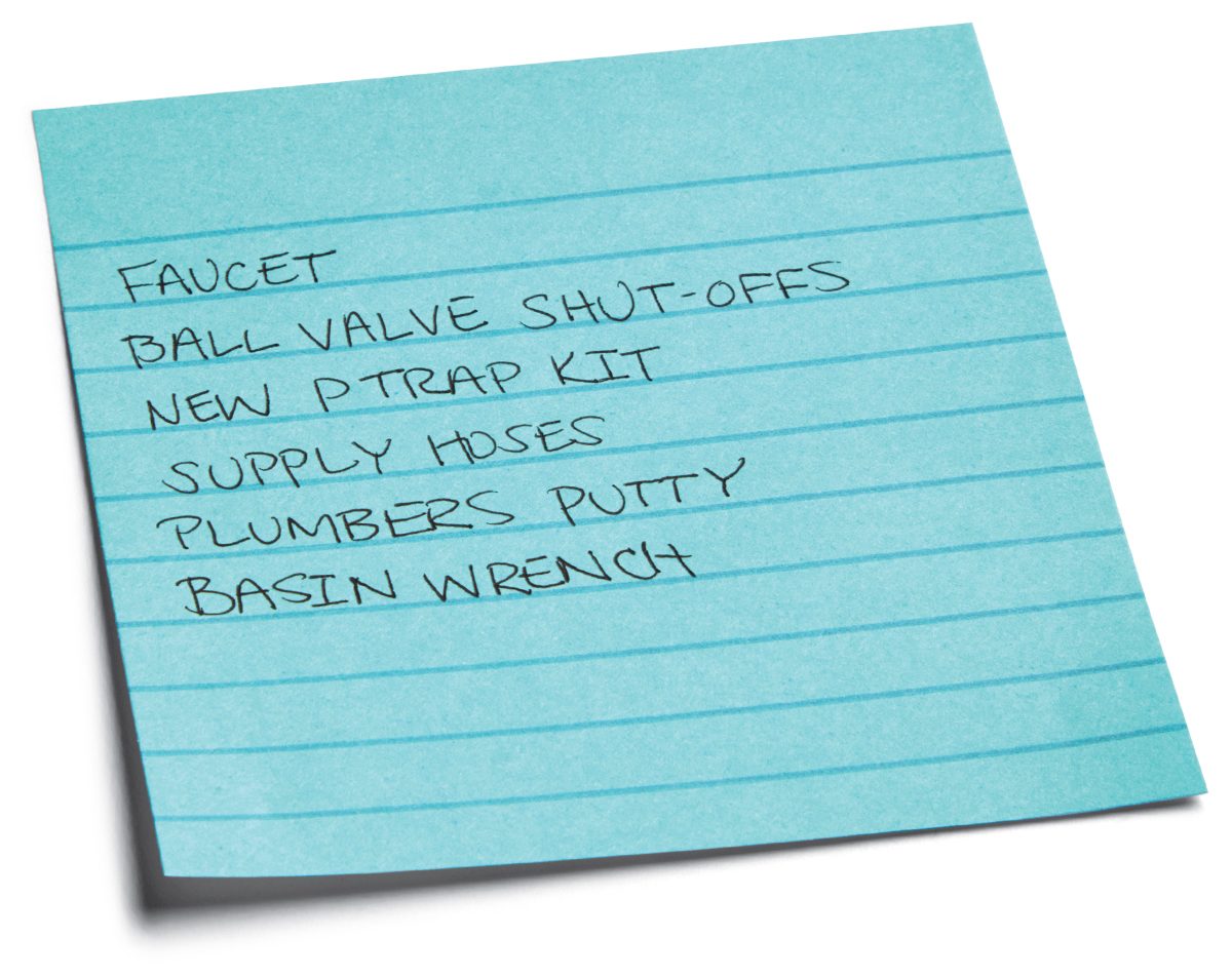 When you go to pick up your new faucet, bring a list of every possible install item you could need. Joe says if he’s headed to a job he hasn’t seen, he’ll be sure to have every potential part on board beforehand. One trip to return a few things is far easier than multiple runs to the home improvement store for the stuff you thought you wouldn’t need.