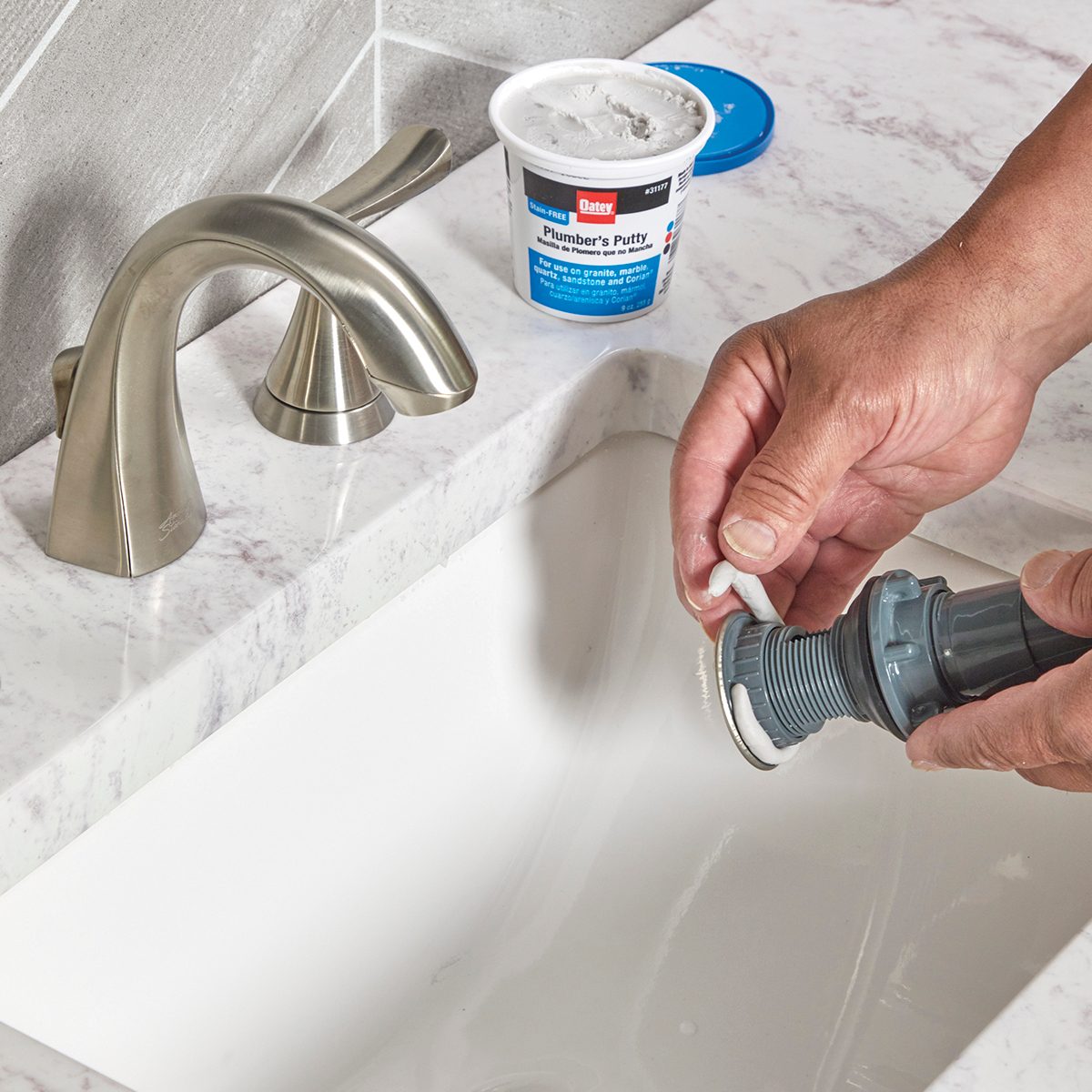 Some manufacturers suggest using silicone caulk to seal a faucet or drain, but beware: It can be difficult to apply and can stain natural stone. Joe prefers plumber’s putty. It’s easier to work with, and the non-staining variety won’t leave blemishes. He also says it’s far easier to repair a faucet assembly that was installed with putty. Silicone is as much an adhesive as it is a sealant and can make pulling things apart a pain.