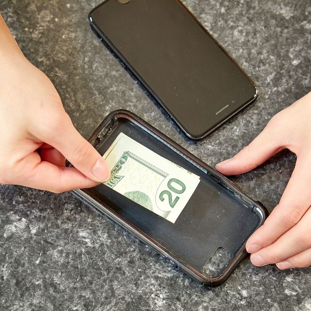 In today’s technology-centered world, you’re much more likely to forget your wallet at home than you are your phone. Keep a little extra cash tucked behind your phone case in case you need to make an emergency purchase.