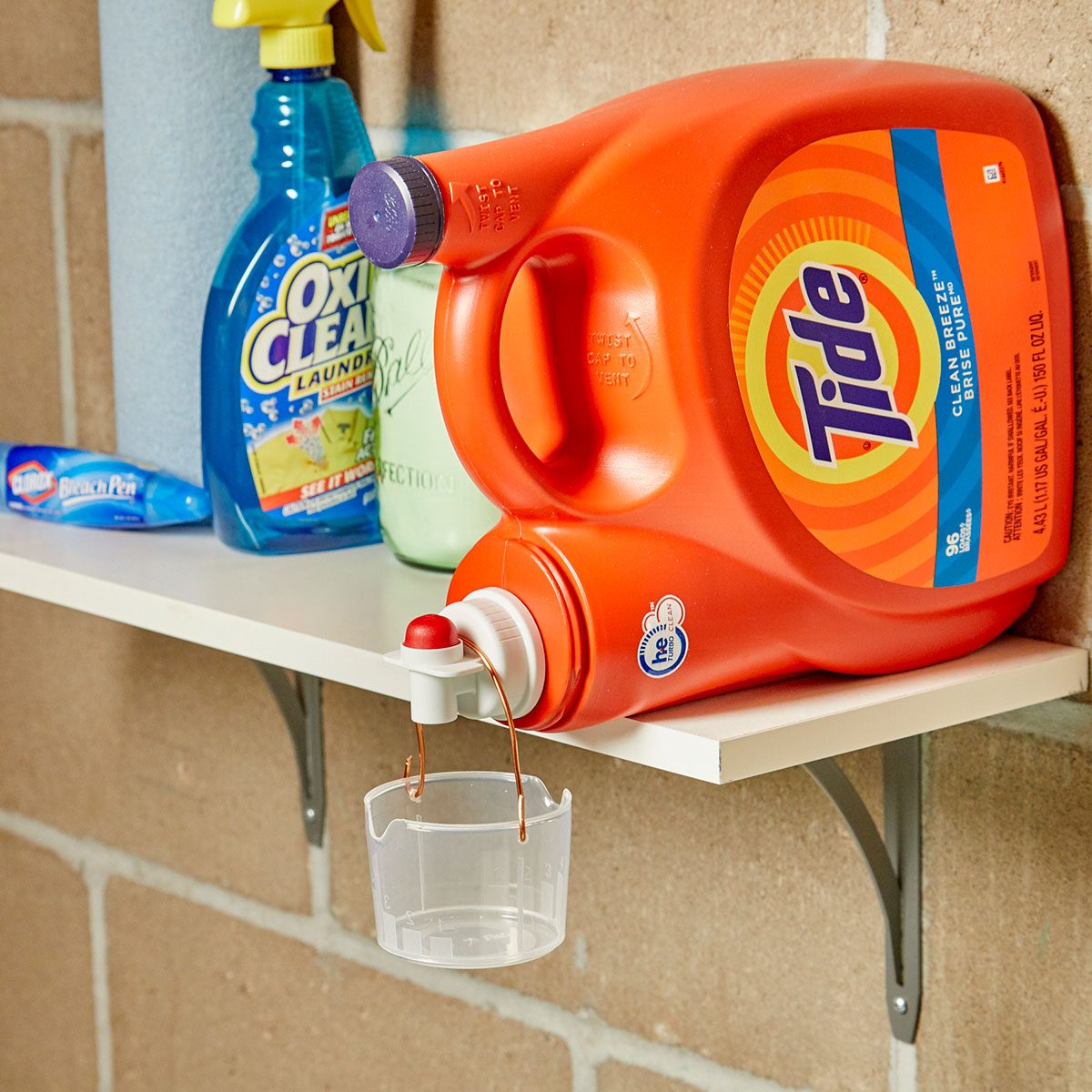 Keep detergent from puddling in your laundry room by making a little catchall from a detergent cup and about six inches of copper wire. Poke the wire through the sides of the detergent cup to create a makeshift handle.