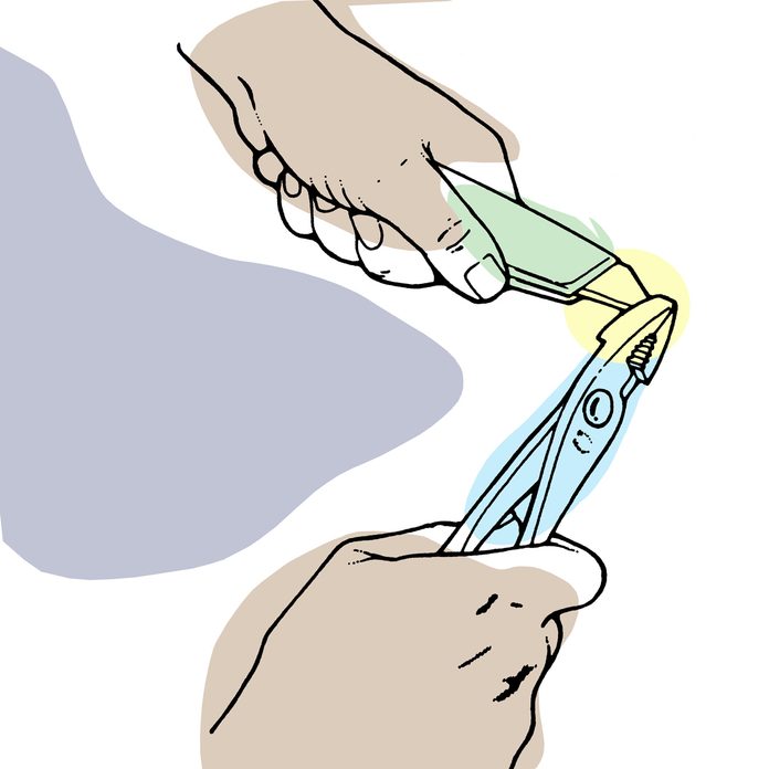 When the blade in your utility knife gets dull, it’s usually only the point and the first 1/4 in. or so that’s bad. You can get additional life from your blade by snapping off the point with a pliers (wear safety glasses). It won’t cut quite as well as a fresh, sharp blade, but a lot better than the dull one. — Dennis Feldpausch