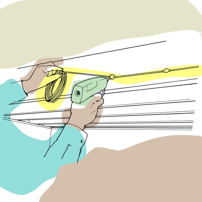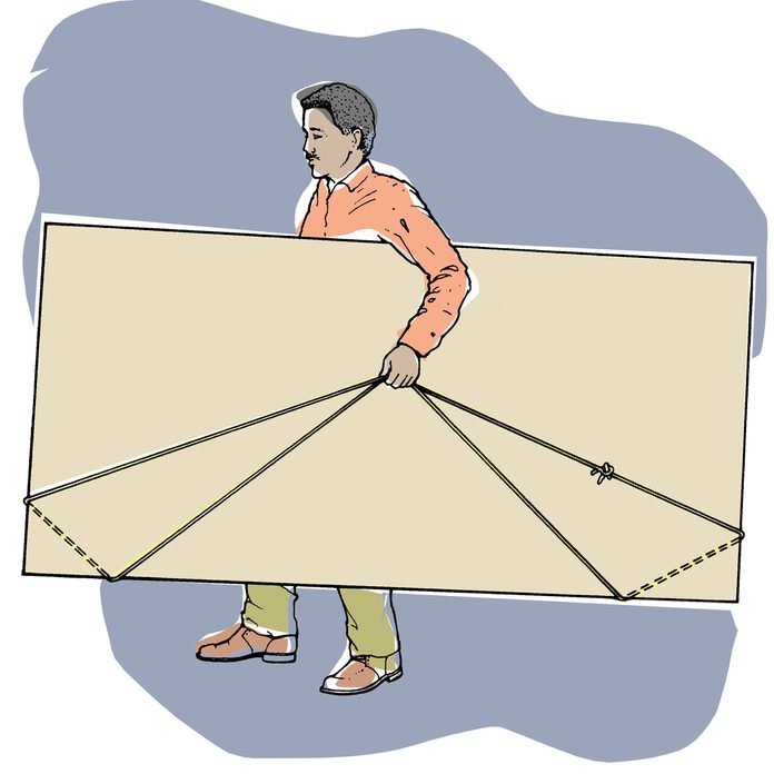 You don’t have to struggle trying to lug around sheets of plywood or drywall. Just tie together the two ends of a length of rope about 18-feet long. Hook this loop around the two bottom corners of the sheet to form a handle.