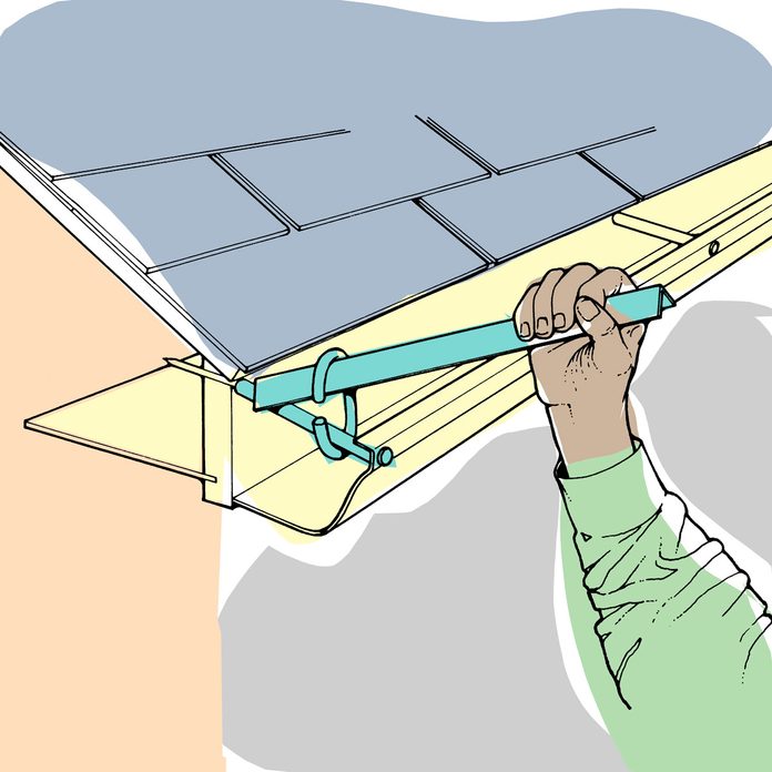 Clean your one-story-high gutters right from the ground using an old paint roller on an extension handle. It’s angled just right to push leaves and debris out quickly and easily. — Lee Sens