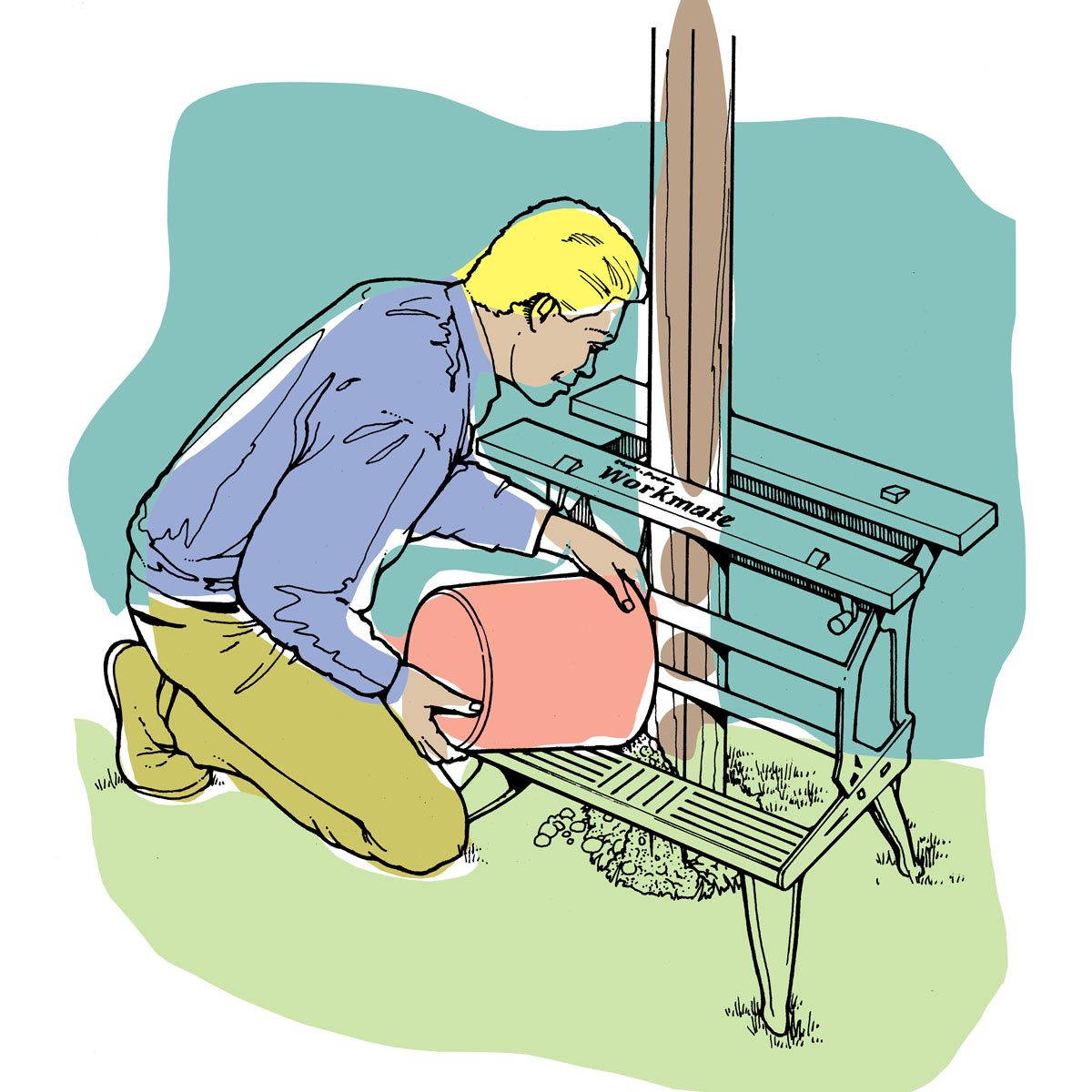 As a novice sinker of fence posts, I was having a heck of a time keeping the post plumb while pouring concrete into the hole. My Workmate workbench saved the day. Here’s the system: Simply position the workbench over the hole, clamp the post in place in the workbench, plumb it, then pour the concrete. By the time you have the next hole dug, the concrete will be firm enough to gently lift the workbench off the post. — Peter Gallagher