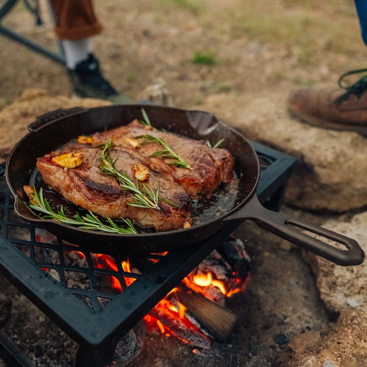 Burgers or s'mores, anyone? Turn your Bonfire 2.0 into a portable grill with the all-new Solo Stove Cookout Kit.