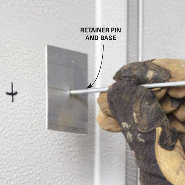 - Line up the insulation so it’s centered in the panel and push it against the retaining pin until it punctures the vinyl facing. Then push the retaining cap over the pin until it snaps into place.