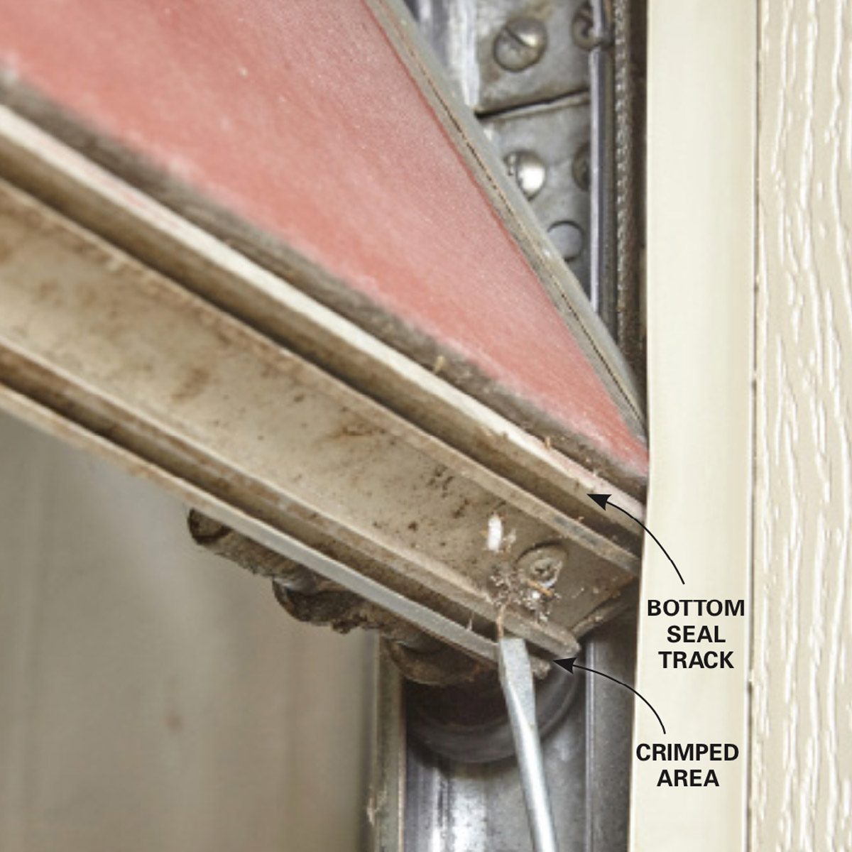 Most steel doors have a track along the bottom to hold a vinyl seal. The vinyl can harden from sun exposure and crack or break off in sections, letting in cold air. Installers usually crimp the slots at each end of the track to retain the seal. Open the crimps and slide out the old seal. Then install the new one.