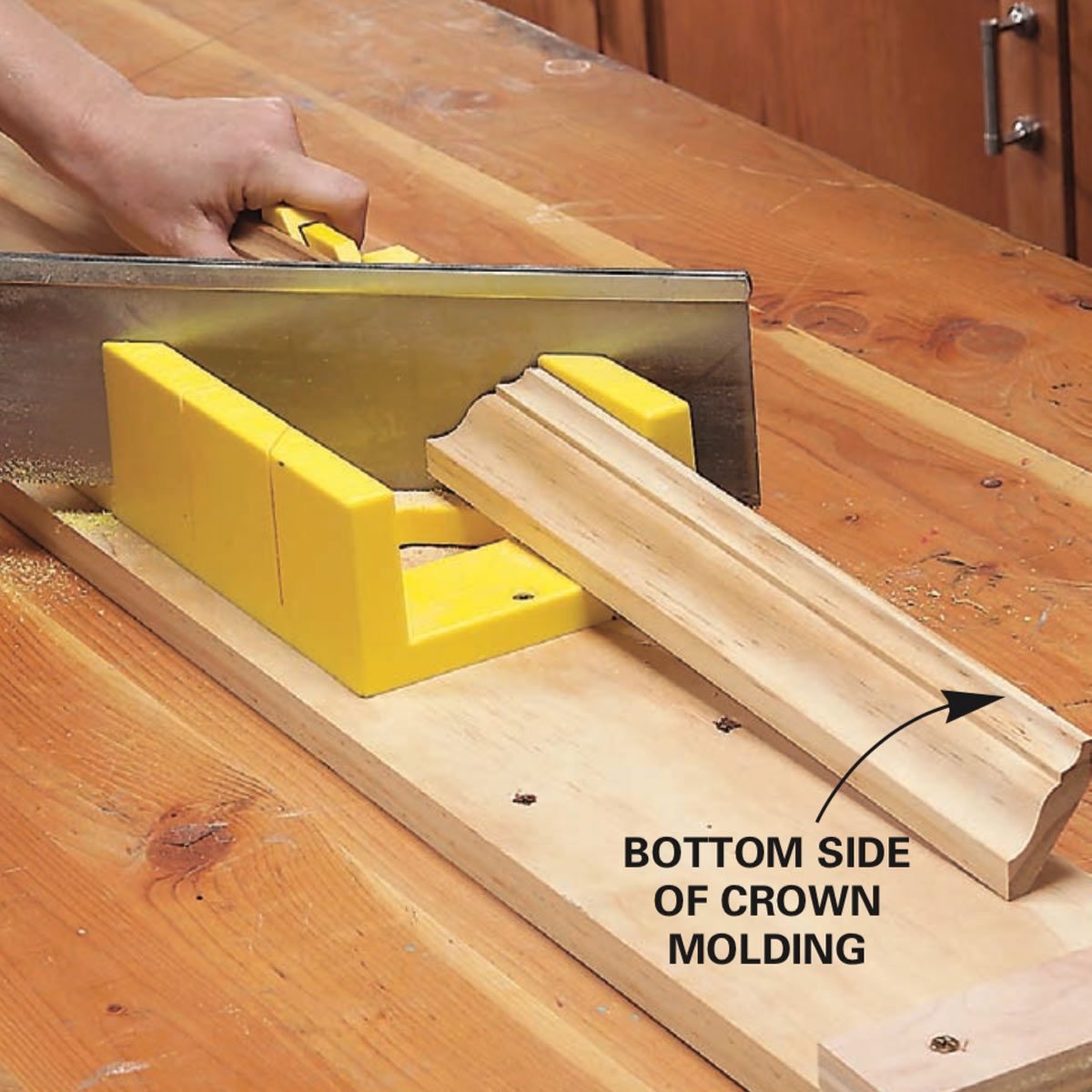 Position your molding upside down in the miter box to support both the top and the bottom of the molding. Check the direction of the angle twice before you cut.
