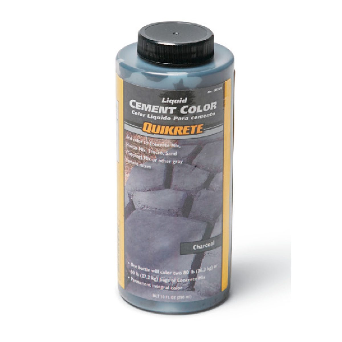 Mix the concrete in a wheelbarrow or mixing tub, using a rake or garden hoe. I decided to darken my top by mixing in two bottles of Quikrete Liquid Cement Color dye. It’s important to get exactly the same amount of dye into every bag of mix. If you mix each bag individually, stir the dye into some water first, and separate it into three equal amounts, one for each bag.