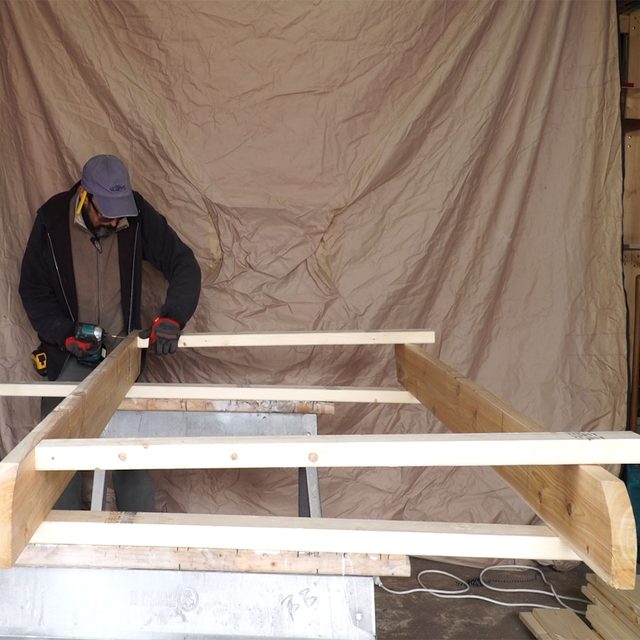 - Cut 45 degree angles at the end of each 2×6 leg.
