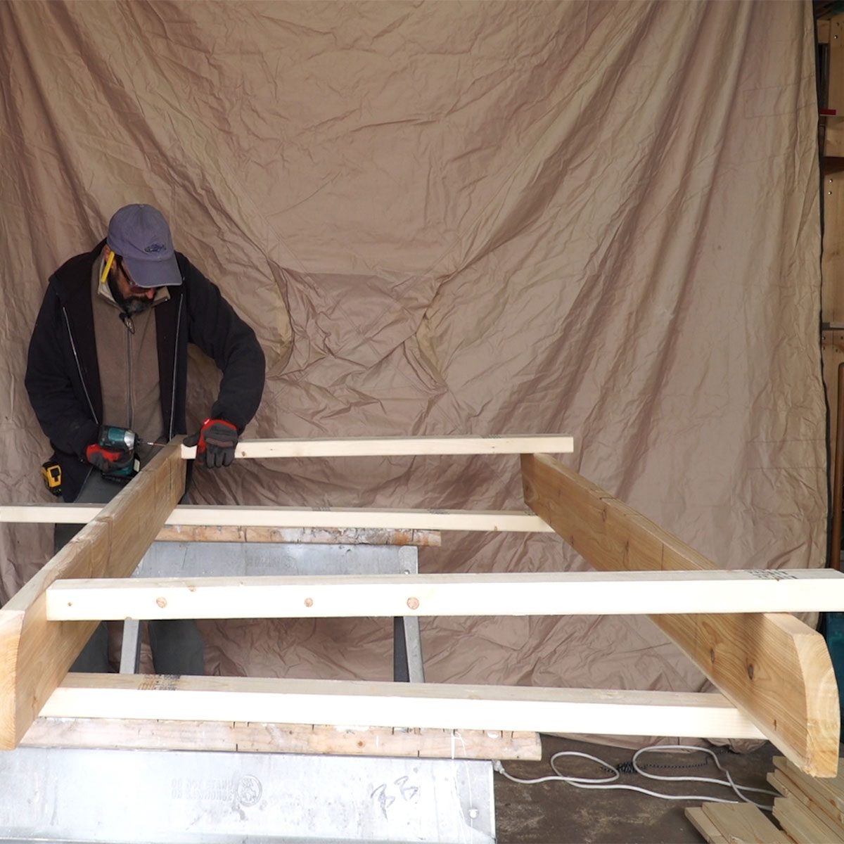 - Cut 45 degree angles at the end of each 2×6 leg.