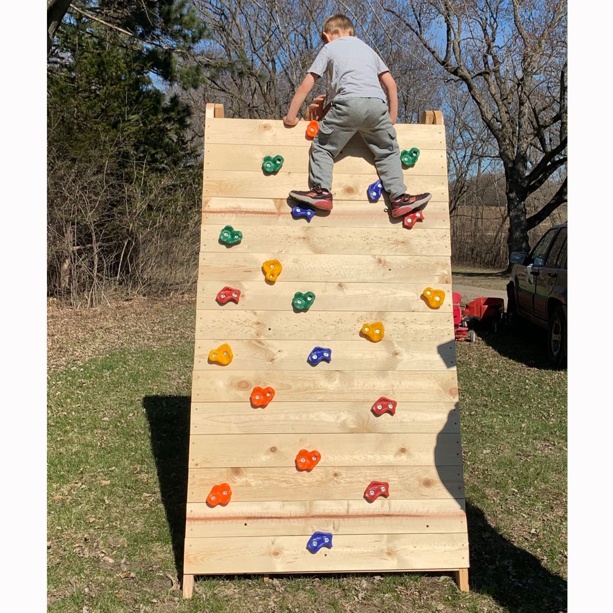 - Turn the kids loose! Be sure to spot check the younger ones until they get the hang of it. This climbing wall is the perfect addition to a swing set or playset.