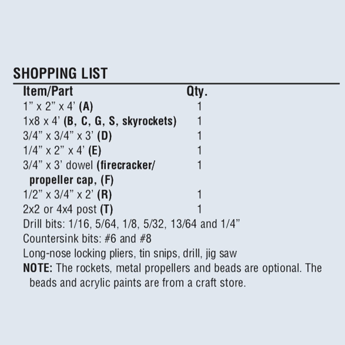 It can be built with common hand tools, a jigsaw and drill. Parts for creating the movement mechanism can be purchased at any well-stocked hardware store. Follow our patterns (just trace or iron them on), or make your own. Tinkering is part of the tradition and pleasure of crafting whirligigs.