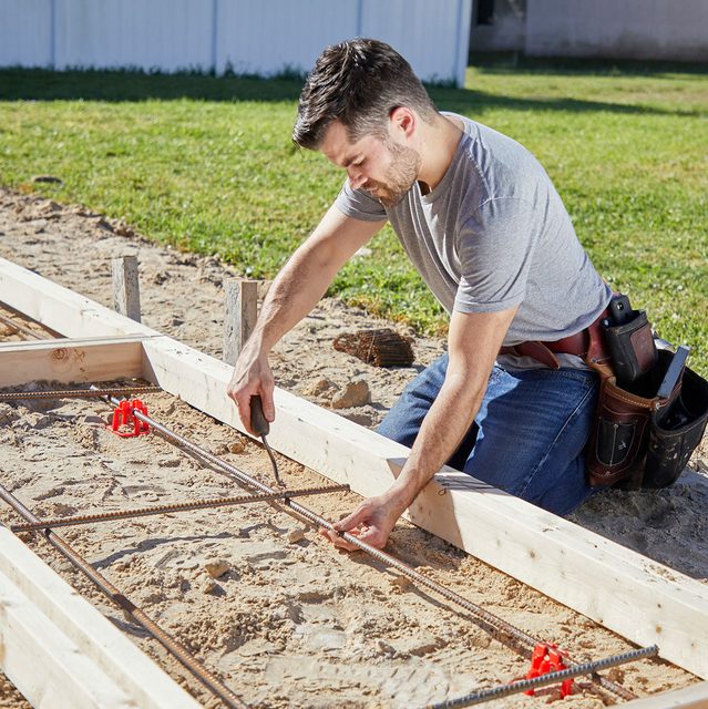 • Pro tip: “Rebar is a must for any poured concrete patio over about 3×3 feet,” says Ashton. “It gives the pour much more resilience and helps to keep it from cracking.”