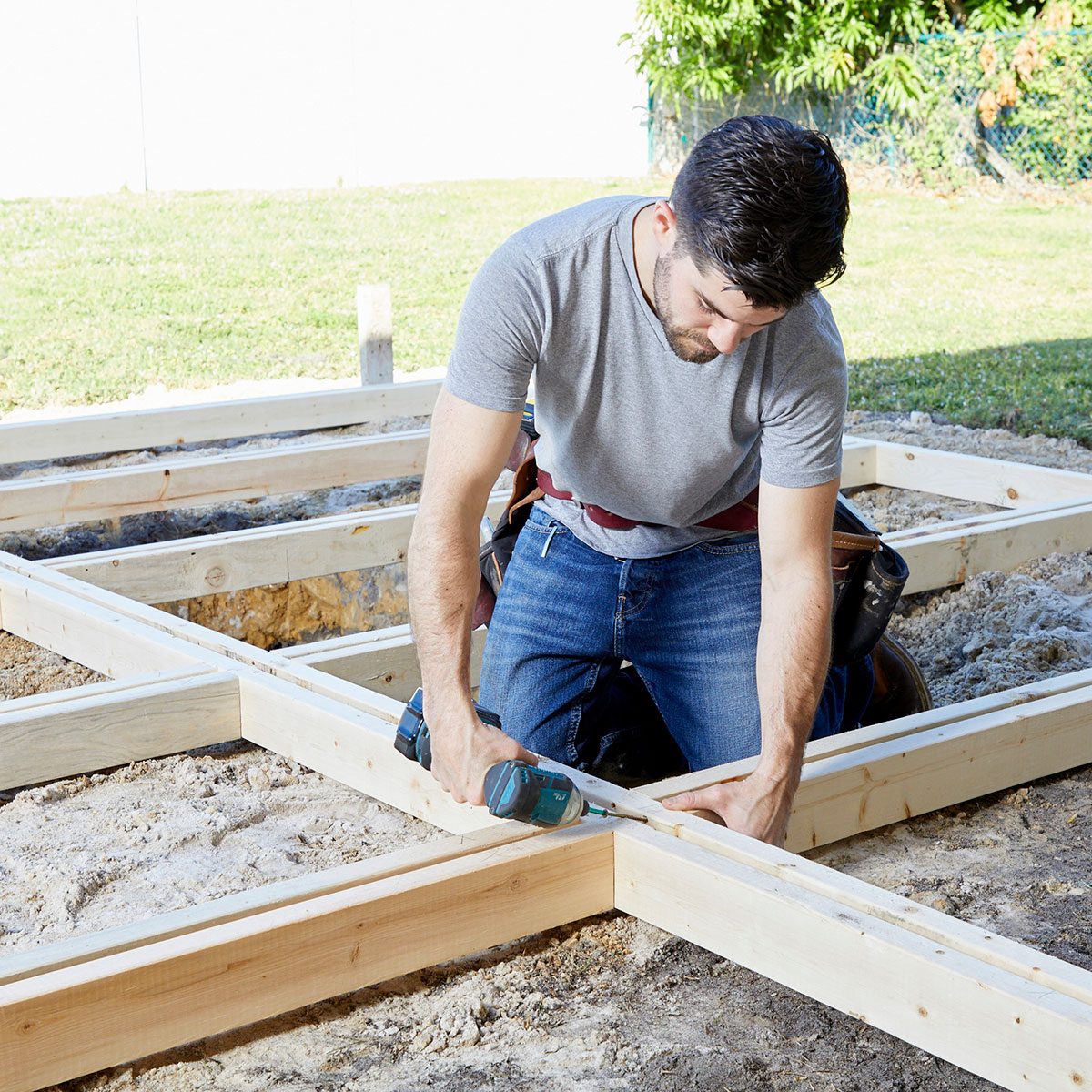 • Lift and adjust the form to make it level, then screw it to the stakes. Once you’re satisfied, cut the stakes flush with the top of the form.