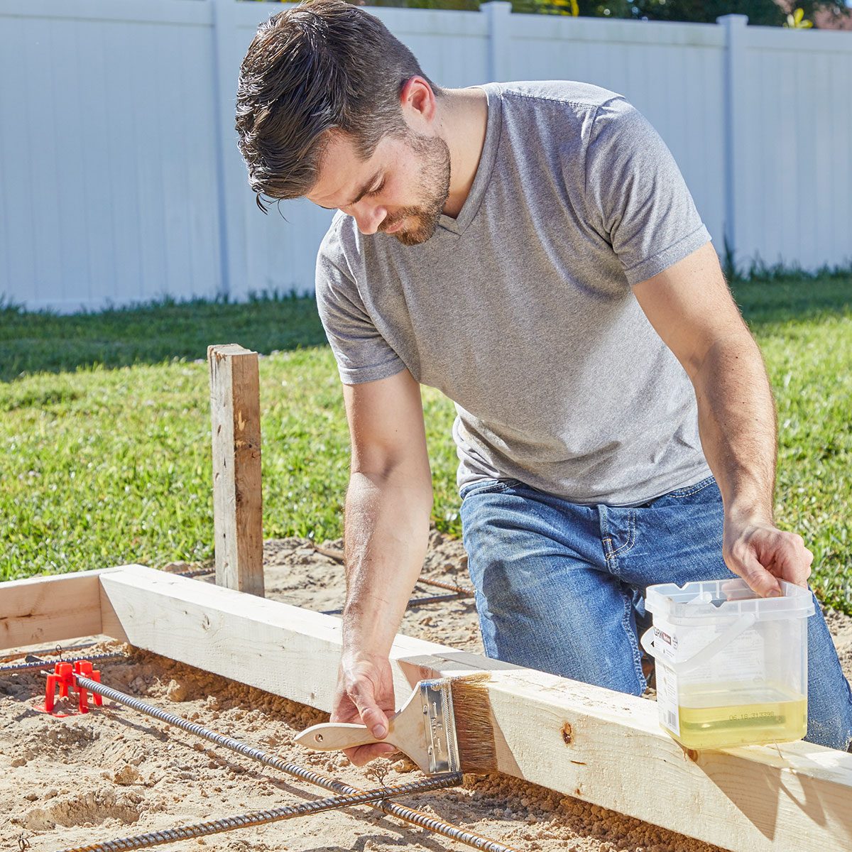 • Spray or brush the forms with kerosene, diesel fuel or cooking oil. This makes it easier to remove the forms after the concrete has set.