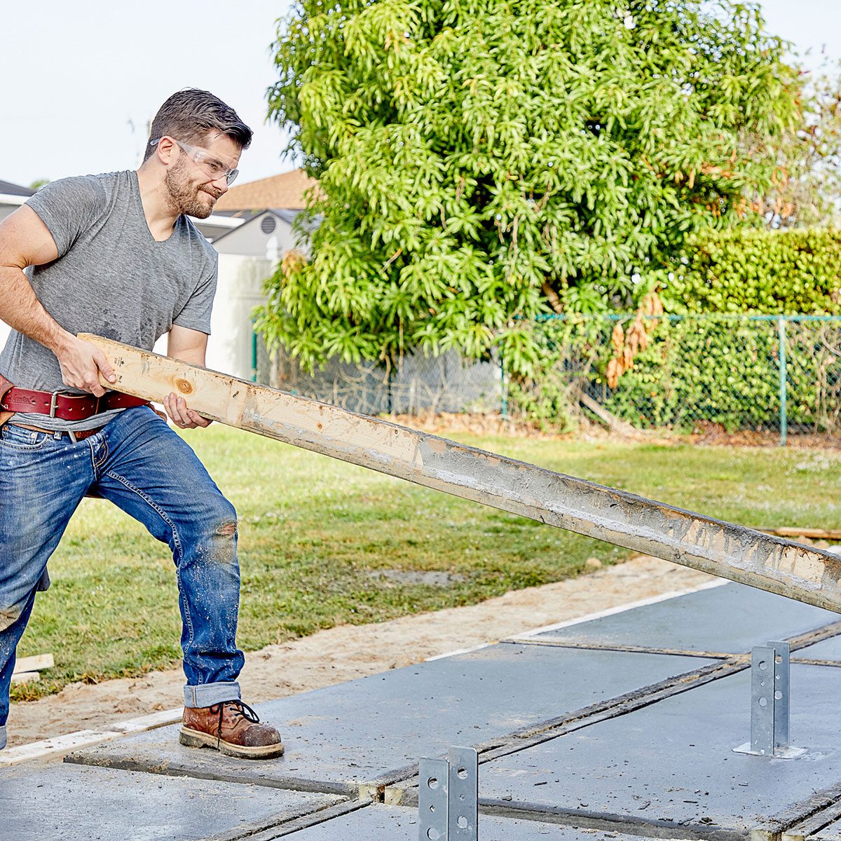 • Pro tip: The person doing the screeding should be limber, as they’ll likely end up crawling around on the form grid a bit no matter how well you’ve planned the process.