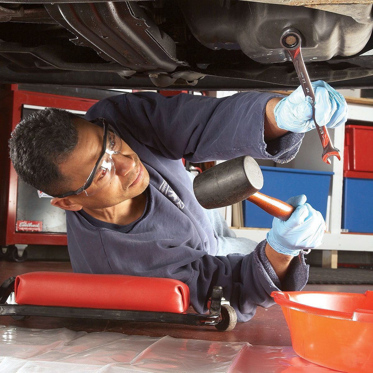 If you can access the drain plug without lifting the car, a slide can help you maneuver underneath, says Nate Ryan of RepairWise. Also, “There are oil extractors that can suck the oil out from the top of the engine, minimizing the need to lift it and drain it from the bottom of the engine,” he says. These can be purchased from Amazon or Vevor for $50 to $150.