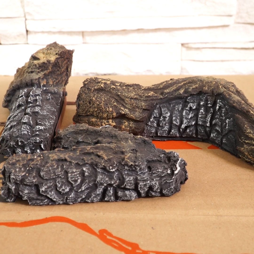 - Install the logs one by one, being careful not to chip or break them — they’re fragile.
