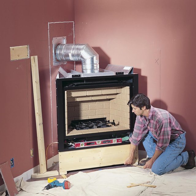 A direct-vent gas fireplace doesn’t need a chimney. Rather, you can run a special vent to the outside through an exterior wall. This process is simple and fire-safe as long as you follow the manufacturer’s directions. Be sure to read them carefully, because they might differ slightly from what we show here. For fire safety, however, make sure to heed the manufacturer’s directions on clearances for combustibles.