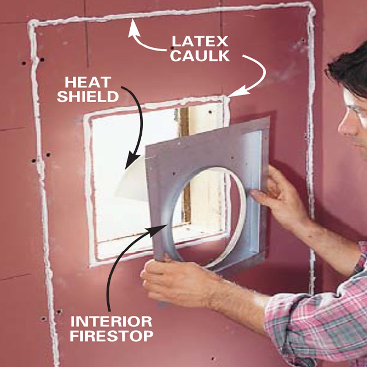 - Then seal the gap between the vent and the interior firestop with high-temperature silicone caulk.