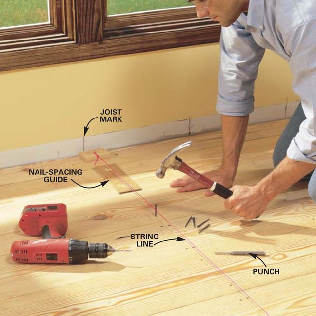 How to install tongue and groove flooring: Nail the floor every 2 ft.