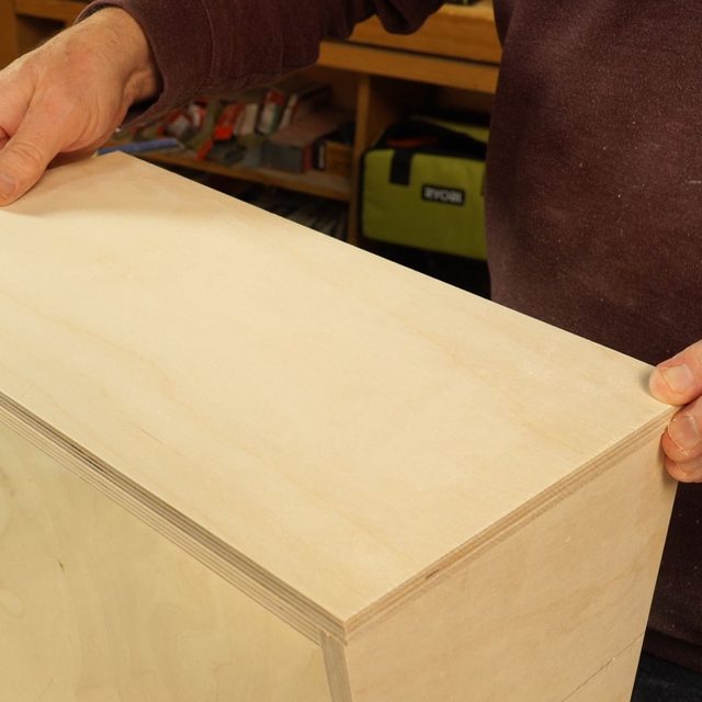 - First, crosscut (across the grain) a 16-in. wide piece from the 30 x 30 x 1/2-in. Baltic birch plywood board using a table saw or circular saw.