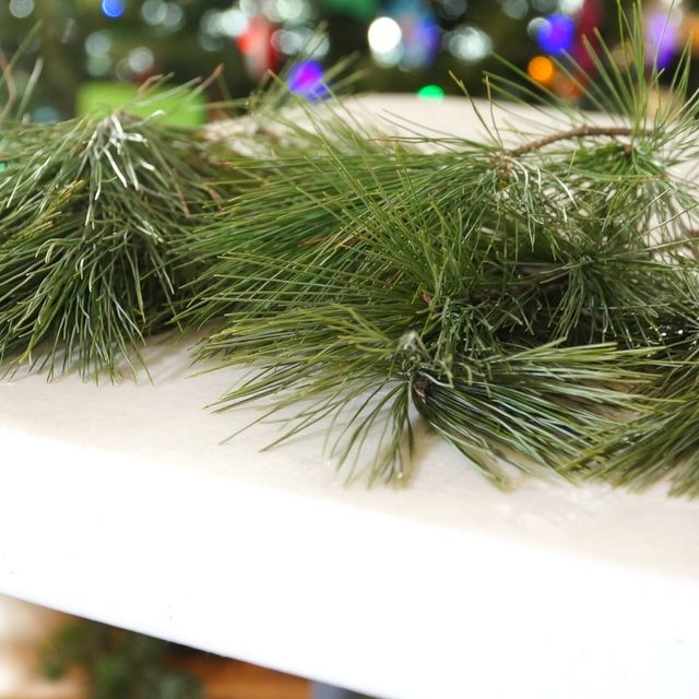 - Cut four to six branches from the bottom of your real Christmas tree using pruning shears.