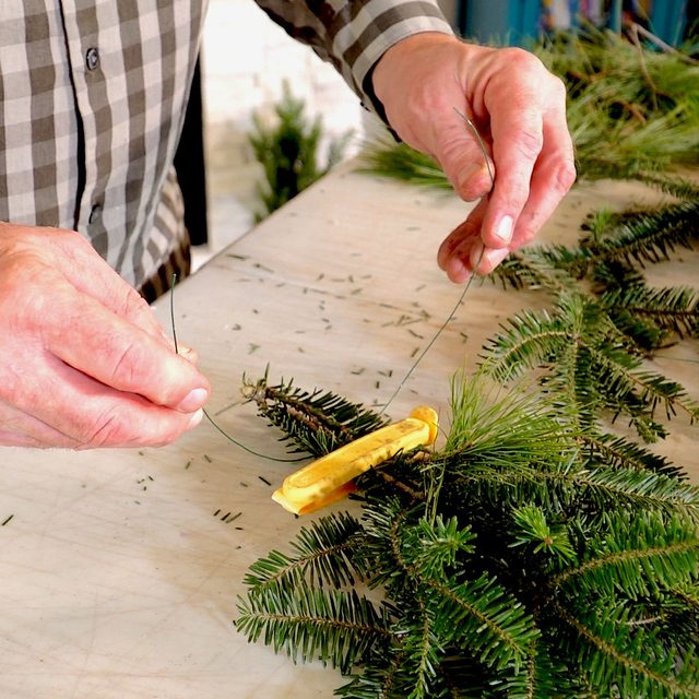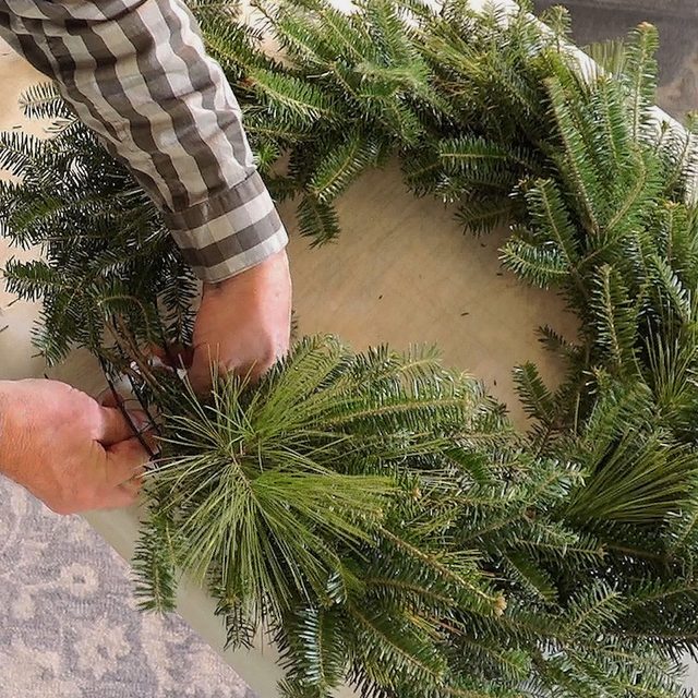 - If you find that some of the bundles are loose, you can always tighten the wires on the backside of the wreath by twisting them with a pair of pliers.