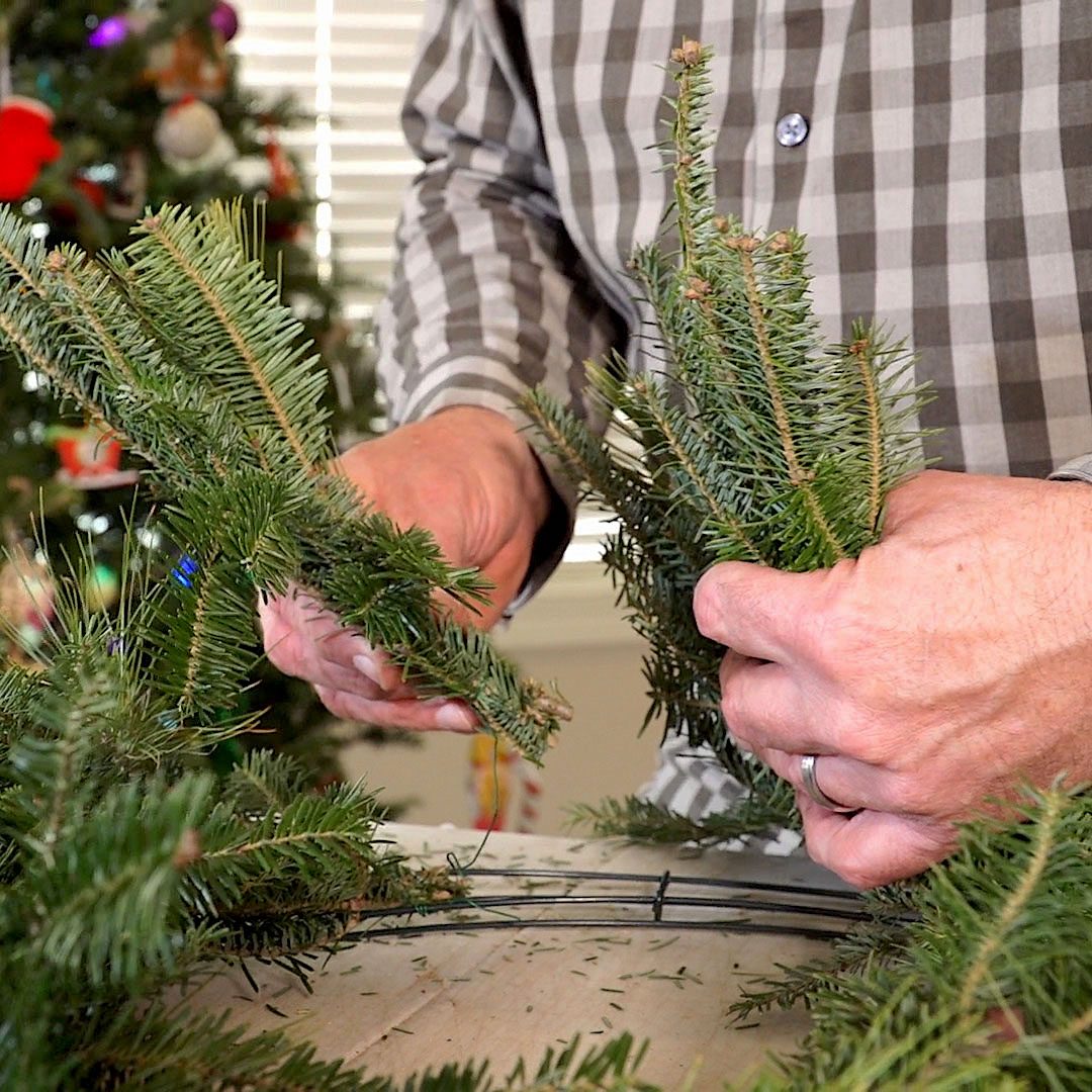 - If you find that some of the bundles are loose, you can always tighten the wires on the backside of the wreath by twisting them with a pair of pliers.