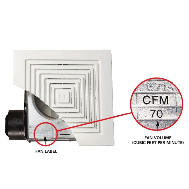 Second, run your bath fans during your bath or shower and for a half hour after to flush out moisture and prevent mold and mildew. Consider adding a timer switch to make this step automatic. Fans are certified by the volume (cfm, or cubic feet per minute) of air “exhausted” out of the room. To find the recommended fan capacity for your bathroom, simply multiply the bathroom square footage by 1.1 (assuming an 8-ft. ceiling; for a 9-ft. ceiling, multiply by 1.5). Replace it with a larger model if it’s not clearing out most of the moisture in your bathroom after five to 10 minutes.